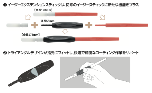 「イージーコーティングキット」、「イージースティックセット」に含まれます、イージースティックに装着しご使用ください。コーティング作業をより快適にします。
